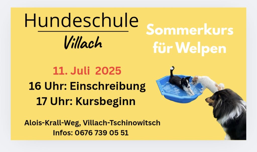 11. Juli 2025: Einschreibung für den Sommerkurs für Welpen aller Rassen, 16 Uhr, Kursbeginn um 17 Uhr